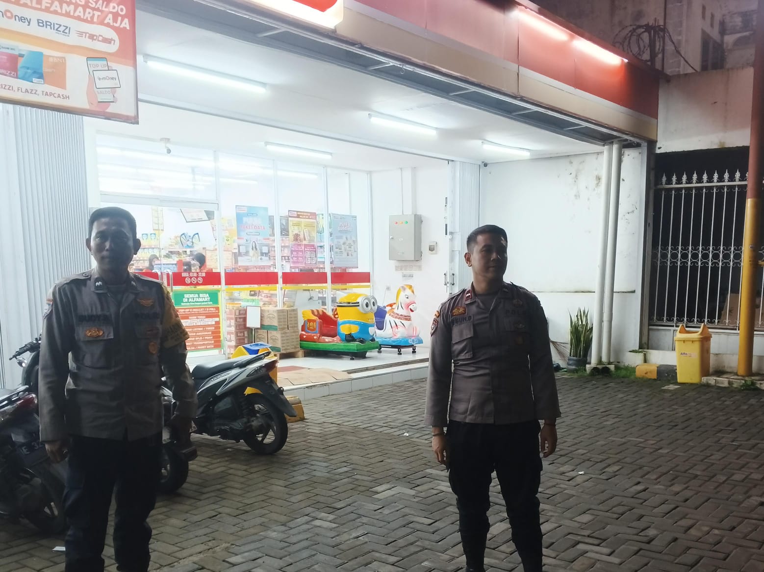 Aipda Budy bersama Aipda Teguh memanfaatkan momen patroli di Alfamart Desa Nanggela untuk berbincang dengan warga mengenai pentingnya sistem keamanan lingkungan (Siskamling). Petugas memberikan motivasi agar warga tetap semangat dalam menjaga lingkungannya masing-masing dari potensi tindak kejahatan.