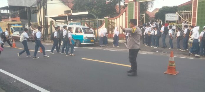 Pengaturan lalu lintas di pagi hari kembali dilaksanakan oleh jajaran Polsek Kramatmulya.