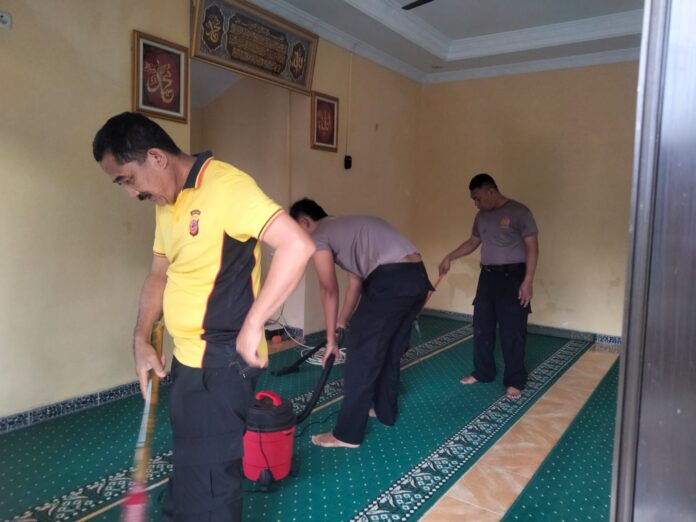 Polres Kuningan Polda Jabar – Semangat untuk memuliakan tempat ibadah kembali digelorakan oleh jajaran Polsek Mandirancan melalui aksi korve religi yang dinamis. Dengan berbekal peralatan kebersihan, para polisi ini melakukan “penggerebekan” terhadap kotoran dan debu di Mushola Al Muhajirin, rumah ibadah yang menjadi benteng spiritual bagi anggota di tingkat Polsek.