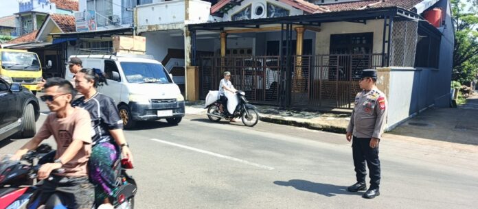 Kegiatan tersebut dilaksanakan oleh Aipda Mulyadi bersama Aipda Azis yang bertugas melakukan pengaturan arus kendaraan serta memberikan pelayanan kepada masyarakat guna mengantisipasi terjadinya kemacetan maupun potensi gangguan keamanan dan ketertiban di sekitar lokasi.