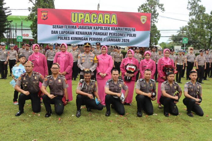 KUNINGAN – Mengawali lembaran tahun baru dengan semangat pengabdian yang lebih tinggi, Polres Kuningan menggelar upacara penting yang memadukan penyegaran organisasi dan apresiasi atas prestasi personel. Pada Jumat pagi (02/01/2026), Kapolres Kuningan AKBP Muhamad Ali Akbar, S.I.K., M.Si., memimpin langsung Upacara Serah Terima Jabatan (Sertijab) Kapolsek Kramatmulya sekaligus Upacara Kenaikan Pangkat periode 1 Januari 2026 di halaman Mapolres Kuningan. Penyegaran di Polsek Kramatmulya Jabatan Kapolsek Kramatmulya kini resmi beralih dari IPTU Adin Safrudin, S.E., kepada IPTU Wahyu Untoro, S.E. Kapolres menyampaikan apresiasi setinggi-tingginya kepada IPTU Adin atas dedikasi dan kontribusi positifnya selama menjabat. Sementara itu, kepada pejabat baru IPTU Wahyu, Kapolres berpesan agar segera memahami karakteristik wilayah dan melanjutkan program-program yang telah berjalan dengan penuh profesionalisme dan integritas. “Jabatan adalah amanah yang harus dipertanggungjawabkan kepada institusi, masyarakat, dan Tuhan. Saya harap pejabat baru mampu menghadirkan inovasi dan semangat baru dalam melayani masyarakat,” tegas AKBP Muhamad Ali Akbar. Kebahagiaan 97 Personel yang Naik Pangkat Suasana khidmat berubah menjadi penuh kebahagiaan saat 97 personel Polres Kuningan menerima kenaikan pangkat setingkat lebih tinggi. Kenaikan pangkat ini meliputi berbagai jenjang, mulai dari IPTU ke AKP (7 orang), hingga jajaran Bintara yang mendominasi dengan kenaikan pangkat BRIPKA ke AIPDA sebanyak 39 personel. Kapolres menekankan bahwa kenaikan pangkat bukanlah sekadar rutinitas, melainkan bentuk penghargaan negara atas loyalitas dan disiplin yang telah ditunjukkan. “Semakin tinggi pangkat yang disandang, semakin besar pula tanggung jawab dan keteladanan yang harus ditunjukkan kepada masyarakat,” pesan Kapolres. Komitmen Pelayanan di Tahun 2026 Dalam amanatnya, Kapolres juga mengingatkan seluruh personel untuk terus menjaga marwah institusi dan menghindari segala bentuk pelanggaran. Di tahun 2026 ini, Polres Kuningan berkomitmen untuk semakin responsif dan humanis sebagai pelindung serta pengayom masyarakat. Momentum ini menjadi suntikan motivasi bagi seluruh keluarga besar Polres Kuningan untuk mewujudkan Polri yang PRESISI (Prediktif, Responsibilitas, dan Transparansi Berkeadilan) demi memberikan pelayanan terbaik bagi warga Kabupaten Kuningan di masa mendatang.