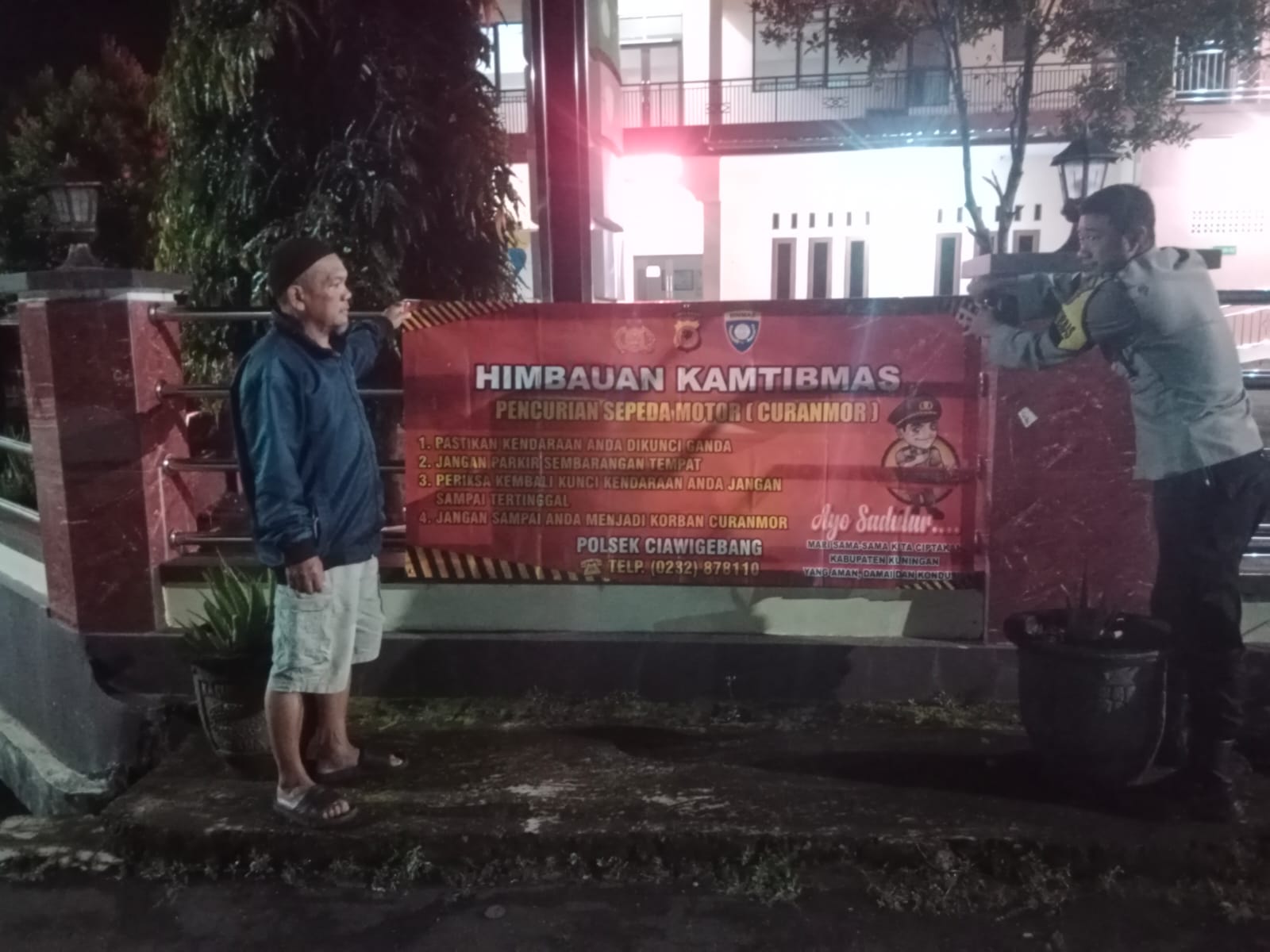 Polres Kuningan Polda Jabar – Dalam upaya meningkatkan kesadaran masyarakat terhadap keamanan lingkungan, Bhabinkamtibmas Desa Muncangela Polsek Ciawigebang Polres Kuningan Polda Jabar, Aiptu Juli Harto melaksanakan kegiatan pemasangan spanduk himbauan kamtibmas terkait antisipasi pencurian sepeda motor (curanmor), bertempat di Desa Muncangela, Kecamatan Cipicung, Kabupaten Kuningan, Rabu (1/4/2026) malam.