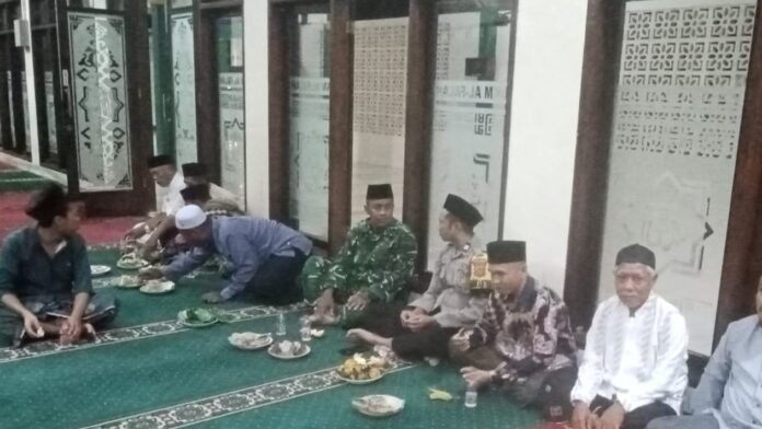 Bhabinkamtibmas Desa Sidaraja Shalat Tarawih Berjamaah Bersama Warga di Masjid Jami Al Falah