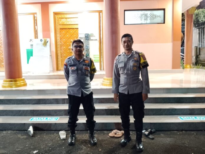 Polres Kuningan Polda Jabar – Dalam rangka memberikan rasa aman dan nyaman kepada masyarakat yang melaksanakan ibadah di bulan suci Ramadhan 1447 H / 2026 M, Anggota Bhabinkamtibmas Polsek Ciawigebang Polres Kuningan Polda Jabar Aiptu Juli Harto bersama Bripka Hendri Priyono melaksanakan pengamanan shalat tarawih di Masjid Jami Al Muawwanah Desa Kadurama Kecamatan Ciawigebang Kabupaten Kuningan, Senin (16/3/2026) malam.