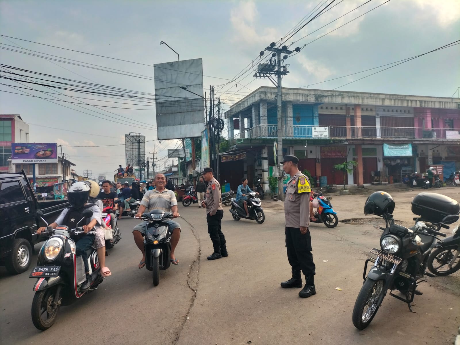 Bhabinkamtibmas Polsek Ciawigebang Laksanakan Pengamanan dan Pengaturan Lalin Saat Ngabuburit di Pasar Ciputat