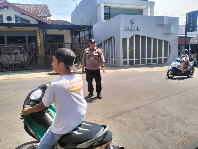 Bhabinkamtibmas Polsek Ciawigebang Polres Kuningan Gatur Lalin Pagi Hari di Simpang Tiga Alun-alun Desa Ciawigebang