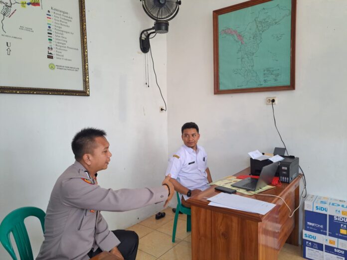 Kuningan – Bhabinkamtibmas Polsek Ciwaru, Bripka Yadi Rustandi, S.H., melaksanakan kegiatan sambang ke Kantor Desa Karangkamulyan, Kecamatan Ciwaru, Kabupaten Kuningan guna mempererat komunikasi dengan perangkat desa sekaligus menyampaikan himbauan keamanan dan ketertiban masyarakat (Kamtibmas).