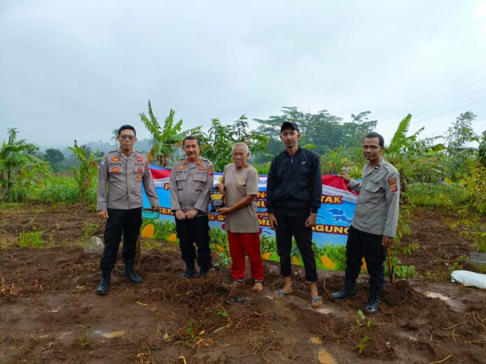 Polres Kuningan Polda Jabar – Kapolsek Mandirancan AKP Atang Mulyana, S.E. memimpin langsung kegiatan penanaman jagung hibrida di Dusun Karya Raharja, Desa Cirea, Kecamatan Mandirancan. Kegiatan ini dilaksanakan dalam rangka menyukseskan Program Ketahanan Pangan Polres Kuningan guna menjamin ketersediaan stok pangan di wilayah perdesaan. Polsek Mandirancan secara aktif terlibat dalam pemanfaatan lahan kering untuk meningkatkan produktivitas hasil tani masyarakat setempat.