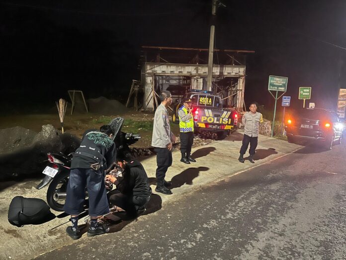 Polres Kuningan Polda Jabar – Memastikan keamanan wilayah hukum dari potensi ancaman luar, Kapolsek Mandirancan AKP Atang Mulyana, SE terjun langsung memimpin patroli Kegiatan Rutin Yang Ditingkatkan (KRYD). Bersama empat personel pilihan, Kapolsek melakukan penyekatan dan pemantauan di titik strategis Simpang Tiga Pakembangan yang merupakan perbatasan krusial penghubung antar-wilayah.