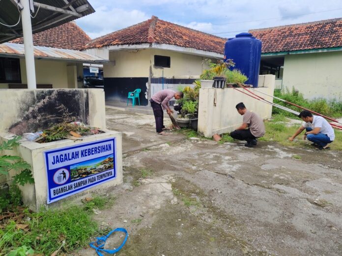 Jaga Kebersihan Lingkungan, Jajaran Polsek Ciawigebang Polres Kuningan Bersihkan Area Mako