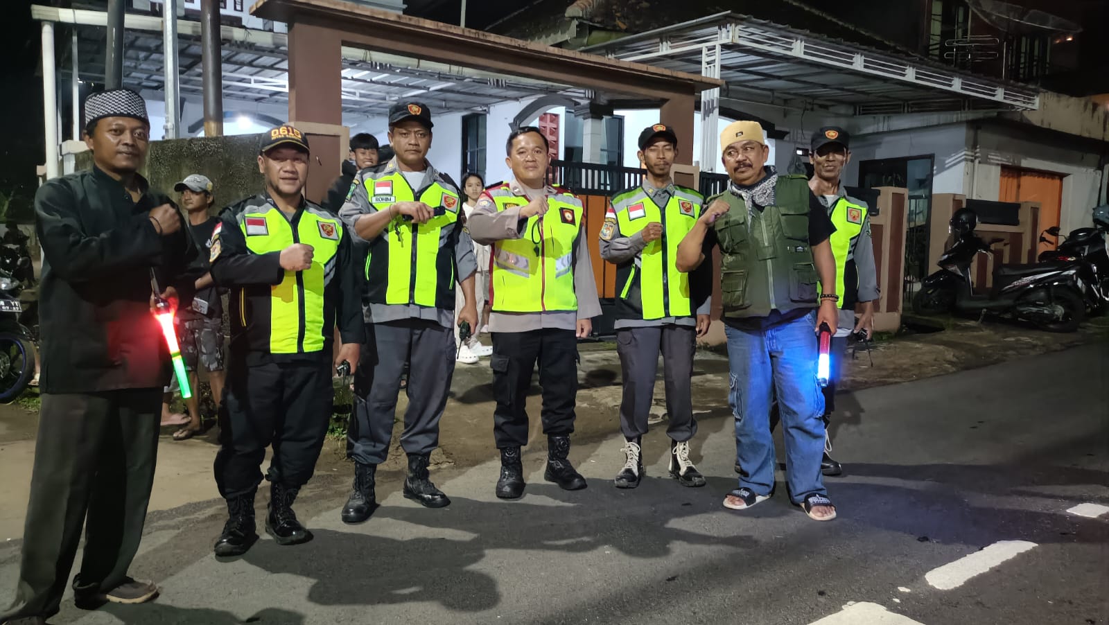 Jaga Kondusifitas, Bhabinkamtibmas Desa Cimaranten dan Linmas Amankan Malam Takbiran Idul Fitri