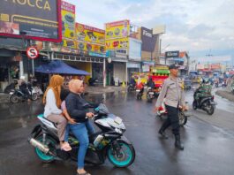Polres Kuningan Polda Jabar – Dalam rangka memberikan rasa aman dan kelancaran arus lalu lintas kepada masyarakat selama bulan suci Ramadhan 1447 H / 2026 M, Anggota Bhabinkamtibmas Polsek Ciawigebang Polres Kuningan Polda Jabar Aiptu Tarjono dan Aipda Ahmad Mansur melaksanakan kegiatan pengamanan dan pengaturan lalu lintas pada sore hari saat masyarakat melaksanakan kegiatan ngabuburit, Selasa (10/3/2026).