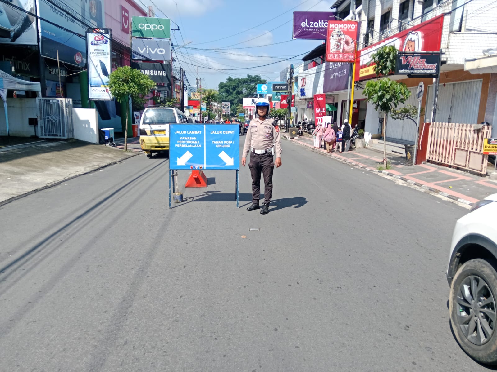 Kuningan – Satuan Lalu Lintas Polres Kuningan melaksanakan rekayasa lalu lintas di kawasan Jalan Siliwangi, Kabupaten Kuningan, pada Senin (16/3/2026). Kegiatan ini difokuskan di kawasan pusat perbelanjaan guna mengantisipasi lonjakan volume kendaraan menjelang Hari Raya Idul Fitri.Rekayasa lalu lintas dimulai sejak pukul 07.00 WIB hingga 18.00 WIB dan akan terus diberlakukan setiap hari hingga Hari H Idul Fitri. Adapun titik pengaturan dimulai dari depan Sanggariang hingga depan Hotel Cordela Kuningan.Dalam pelaksanaannya, petugas melakukan sejumlah langkah strategis untuk menjaga kelancaran arus lalu lintas. Di antaranya pemasangan tolo-tolo atau rambu bambu serta rambu penunjuk arah guna melakukan kanalisasi jalur, yakni pemisahan antara jalur lambat dan jalur cepat.Selain itu, Satlantas juga menyiapkan jalur penyeberangan khusus bagi pejalan kaki sebagai upaya meningkatkan keselamatan masyarakat, khususnya di kawasan pertokoan yang padat aktivitas.Upaya lainnya dilakukan dengan pemasangan water barrier di trotoar area pertokoan Ria Busana. Langkah ini bertujuan untuk mencegah kendaraan roda dua parkir di atas trotoar sehingga fungsi trotoar tetap optimal bagi pejalan kaki.Kasat Lantas Polres Kuningan, AKP Aktuin Moniharapon, mengatakan bahwa rekayasa lalu lintas ini merupakan langkah antisipatif untuk menghadapi peningkatan aktivitas masyarakat menjelang Lebaran.“Kami melakukan rekayasa lalu lintas ini sebagai upaya mengurai kepadatan kendaraan di kawasan pusat perbelanjaan. Harapannya, arus lalu lintas tetap lancar dan masyarakat dapat beraktivitas dengan aman dan nyaman,” ujarnya.Ia juga mengimbau kepada seluruh pengguna jalan untuk mematuhi rambu-rambu serta arahan petugas di lapangan.“Kami mengajak masyarakat untuk bersama-sama menjaga ketertiban berlalu lintas. Dengan disiplin dan saling menghargai sesama pengguna jalan, kita bisa menciptakan situasi yang aman dan kondusif,” tambahnya.Selama pelaksanaan kegiatan, situasi arus lalu lintas di kawasan tersebut terpantau aman, tertib, dan lancar. Kehadiran petugas di lapangan juga mendapat respons positif dari masyarakat yang merasa terbantu dengan pengaturan yang dilakukan.