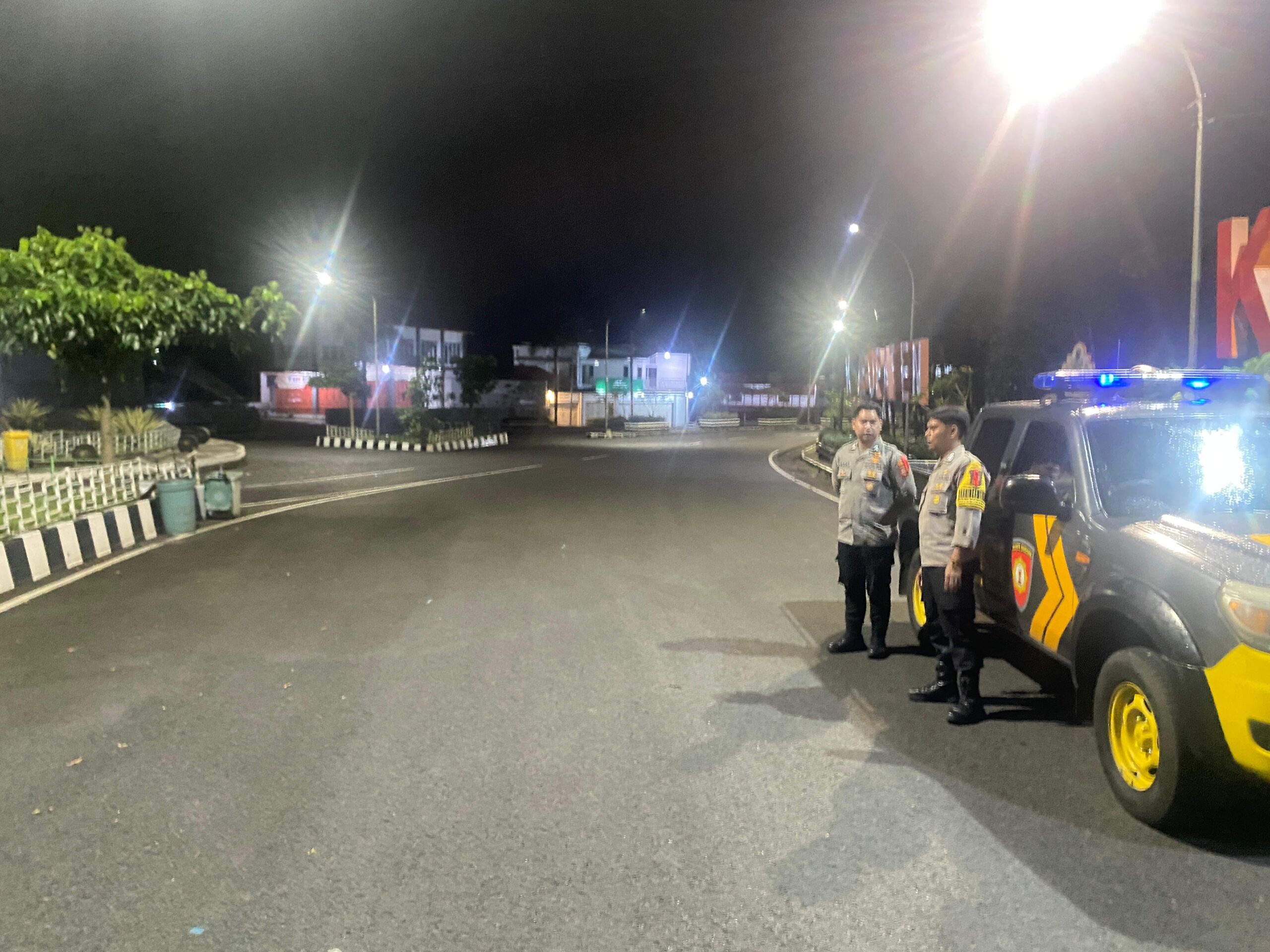 Selain melakukan pemantauan situasi wilayah, petugas juga melaksanakan patroli dialogis dengan warga yang masih beraktivitas pada malam hari.