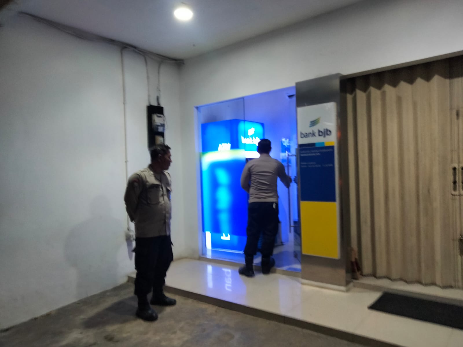 Ka SPKT 3 Aiptu Ajat melaksanakan kontrol intensif di area perbankan yang terletak di jalur utama Mandirancan. Pemeriksaan dilakukan mulai dari pengecekan fisik bangunan hingga dialog keamanan dengan petugas yang berjaga di lokasi guna memastikan tidak ada kendala keamanan yang berarti.