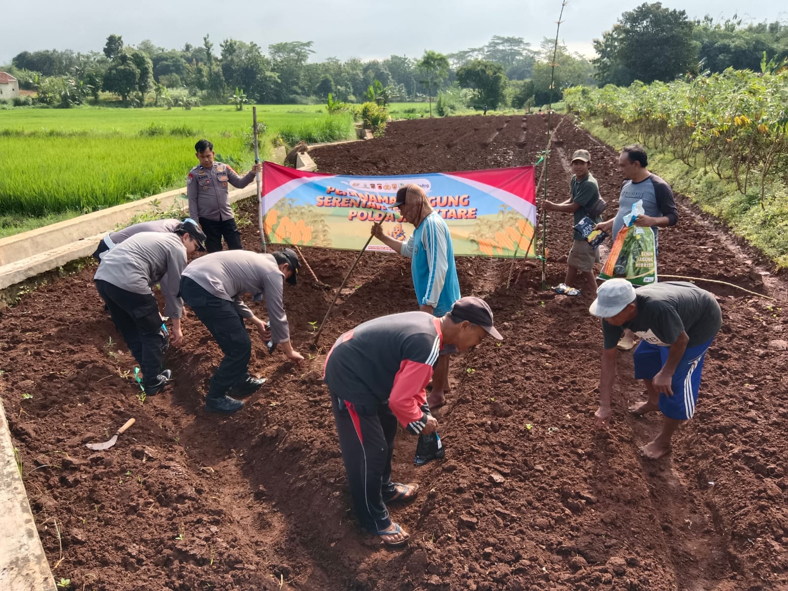 Polres Kuningan Polda Jabar – Kapolsek Cidahu, AKP Amdan Saleh, SH, bersama anggota Polsek Cidahu melaksanakan penanaman jagung Hibrida secara serentak bersama petani desa Cidahu di tanah kas desa yang dikelola oleh Sekdes Cidahu, Bapak Iding Samhudin. Kegiatan ini dilakukan di tiga titik di area Dusun Kliwon Desa Cidahu, Kecamatan Cidahu, Kabupaten Kuningan, dengan luas lahan 1 hektar.