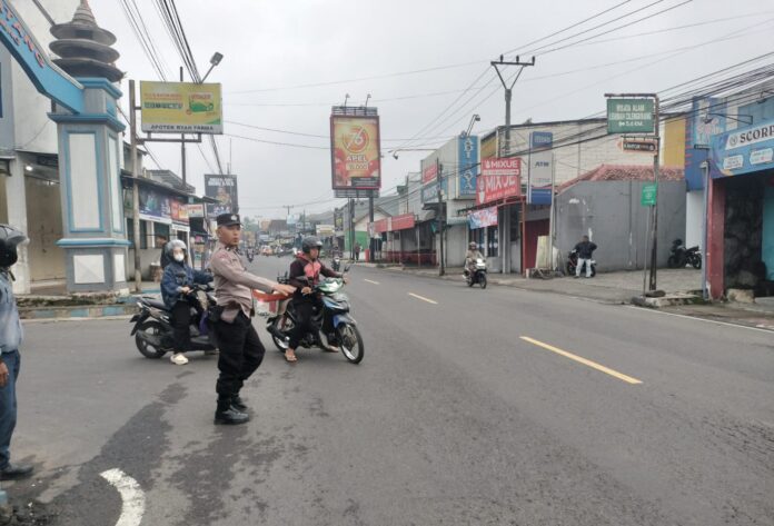 Pengaturan lalu lintas di pagi hari kembali dilaksanakan oleh jajaran Polsek Kramatmulya.