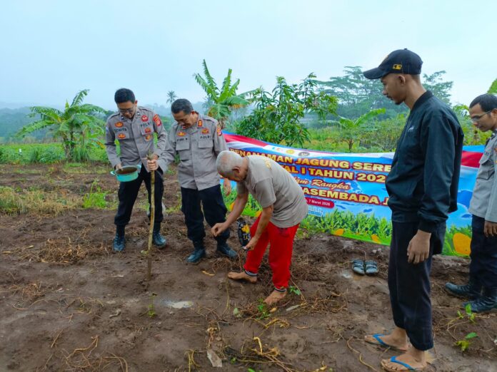 Polres Kuningan Polda Jabar – Kapolsek Mandirancan AKP Atang Mulyana, S.E. memanfaatkan momentum program ketahanan pangan untuk mempererat komunikasi sosial dengan komunitas petani di Desa Cirea. Kapolsek meyakini bahwa kedekatan emosional yang dibangun di lahan pertanian akan mempermudah penyampaian pesan-pesan kamtibmas kepada masyarakat. Aksi menanam jagung ini menjadi sarana dialogis yang efektif dalam menjaga stabilitas keamanan desa berbasis kesejahteraan petani.