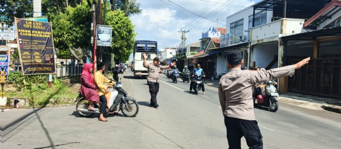 Ops Ketupat Lodaya 2026 Polres Kuningan, Personel Pos PAM Ciawigebang Lakukan Pengamanan Arus Lalin Pasca Idul Fitri 1447 H di Ciawigebang