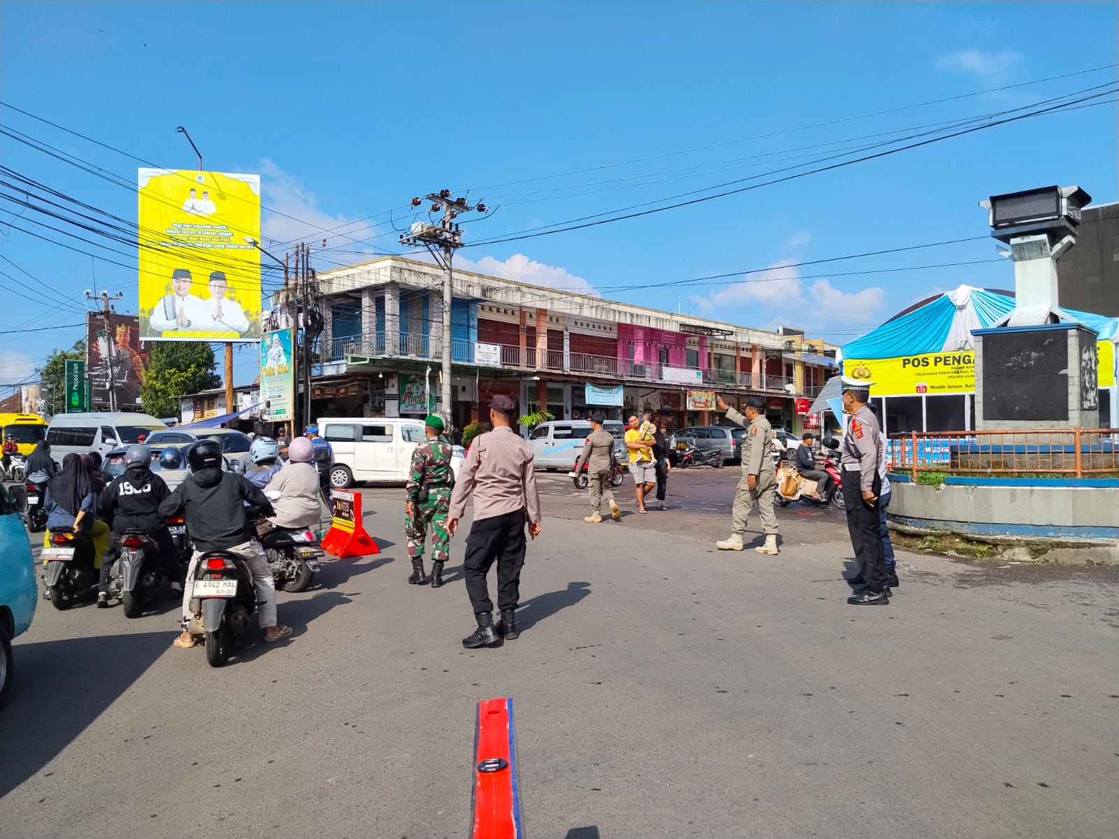 KUNINGAN – Guna menjamin kelancaran arus lalu lintas dan keamanan masyarakat di titik-titik pusat perbelanjaan pasca-Lebaran, jajaran Polres Kuningan terus menyiagakan personel di lokasi strategis. Pada Senin pagi, 23 Maret 2026, personel Regu A Pos Pengamanan (Pos Pam) Pasar Ciawigebang melaksanakan giat pengaturan lalu lintas dan pengamanan wilayah sebagai bagian dari rangkaian Operasi Ketupat Lodaya 2026.Kegiatan diawali dengan apel kesiapan yang dipimpin oleh Padal AKP Wartono, S.E., di bawah kendali Ka Pos Pam AKP Dani Supriadi, S.H. Dalam arahan tersebut, ditekankan pentingnya profesionalisme dan keikhlasan dalam bertugas. Personel diinstruksikan untuk tetap menjaga sikap tampang dengan mengedepankan prinsip 3S (Senyum, Sapa, Salam) serta tidak bersikap apatis terhadap dinamika situasi di sekitar pusat keramaian pasar.Kapolres Kuningan AKBP Muhammad Ali Akbar, S.I.K., M.Si., melalui Kasi Humas AKP Mugiyono, S.E., M.M., menjelaskan bahwa penempatan personel di titik-titik rawan kemacetan dan persimpangan sekitar Pasar Ciawigebang bertujuan untuk mengantisipasi kepadatan kendaraan akibat aktivitas masyarakat yang masih tinggi. Selain melakukan pengaturan jalan (Gatur Lantas), petugas juga proaktif memberikan bantuan kepada pengguna jalan, menciptakan rasa aman bagi warga yang sedang beraktivitas.Hingga berita ini diturunkan, situasi arus lalu lintas dan kondisi keamanan di sekitar Pos Pam Pasar Ciawigebang terpantau dalam keadaan aman, lancar, dan kondusif. Monitoring secara berkala terus dilakukan untuk memastikan stabilitas kamtibmas tetap terjaga. Polres Kuningan berkomitmen untuk terus menghadirkan pelayanan kepolisian yang responsif dan humanis demi kenyamanan seluruh lapisan masyarakat di Kabupaten Kuningan.