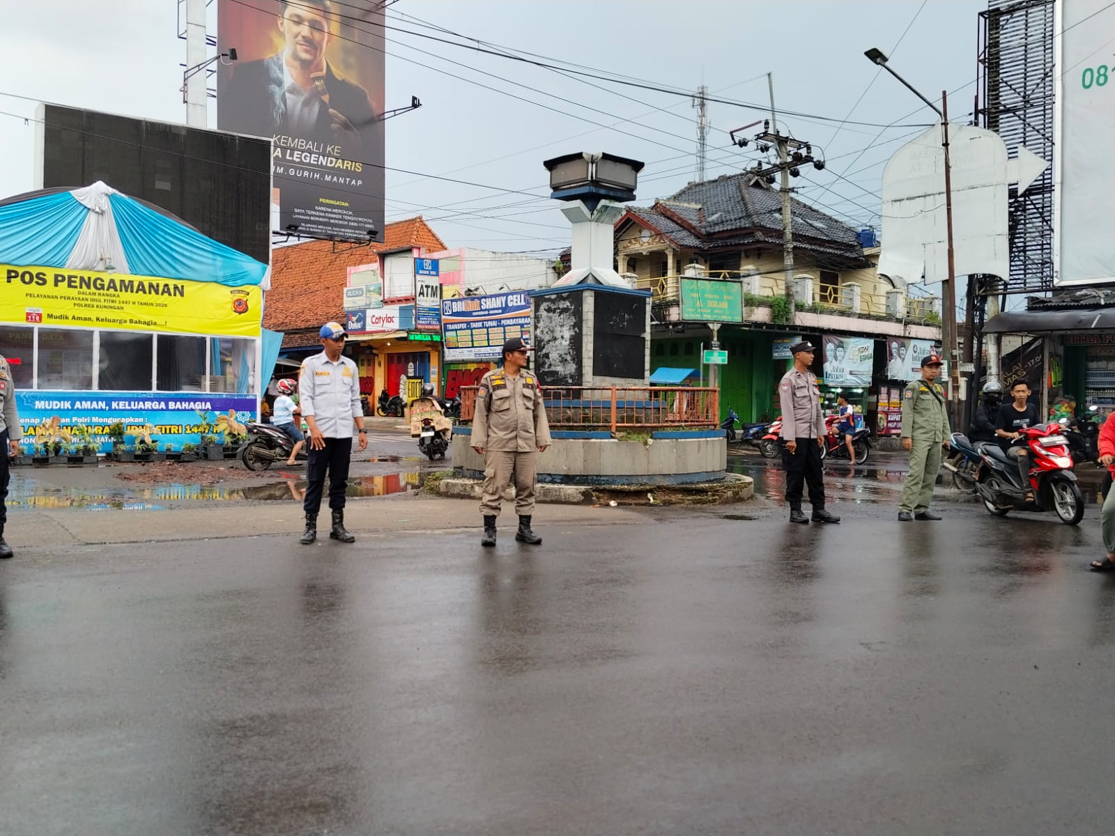 KUNINGAN – Personel Pos Pengamanan (Pos Pam) Pasar Ciawigebang melaksanakan giat pengaturan arus lalu lintas dan pengamanan wilayah secara menyeluruh pada Minggu sore, 15 Maret 2026. Kegiatan yang dimulai pukul 16.00 WIB ini difokuskan pada pengelolaan kepadatan kendaraan di sekitar pusat perbelanjaan yang mulai menunjukkan peningkatan aktivitas menjelang waktu berbuka puasa dan persiapan lebaran. Langkah ini diambil guna memastikan masyarakat dapat beraktivitas dengan nyaman tanpa terganggu oleh hambatan lalu lintas yang berarti.Di bawah kendali Padal Regu A AKP Wartono, S.E., tim pengamanan yang terdiri dari personel gabungan Polsek jajaran dikerahkan untuk melakukan pemantauan pada titik-titik krusial. Penempatan personel difokuskan pada persimpangan di sekitar pasar yang menjadi titik temu arus kendaraan dari berbagai arah. Selain mengatur lalu lintas, petugas juga aktif memonitor situasi lingkungan sekitar Pos Pam guna mencegah terjadinya tindak kriminalitas maupun gangguan kamtibmas lainnya yang dapat meresahkan warga.Kapolres Kuningan melalui Ka Pos Pam AKP Dani Supriadi, S.H., menegaskan bahwa kehadiran polisi di lapangan harus benar-benar dirasakan manfaatnya oleh masyarakat melalui pelayanan yang tulus. Petugas di lapangan tidak hanya mengatur jalan, tetapi juga siap siaga memberikan bantuan kepada masyarakat yang memerlukan informasi atau kendala teknis saat berkendara. Sikap humanis tetap menjadi prioritas utama agar masyarakat merasa terayomi sekaligus patuh terhadap aturan keselamatan berlalu lintas di tengah musim mudik Operasi Ketupat Lodaya 2026.Berdasarkan hasil pantauan di lokasi, kondisi arus lalu lintas di kawasan Pasar Ciawigebang terpantau lancar dan terkendali tanpa adanya gangguan yang menonjol. Monitoring berkala terus dilakukan untuk memastikan kamseltibcarlantas tetap terjaga hingga masa operasi berakhir. Melalui dedikasi personel Regu A ini, Polres Kuningan berupaya memberikan jaminan keamanan yang maksimal bagi warga lokal maupun pemudik yang melintasi wilayah timur Kuningan agar situasi tetap kondusif dan penuh rasa aman.