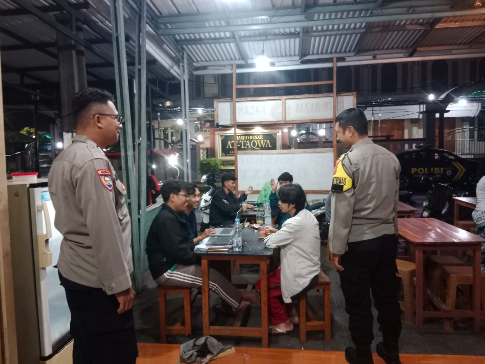 Patroli KRYD Malam Hari, Bhabinkamtibmas Polsek Ciawigebang Polres Kuningan Berikan Himbauan Kamtibmas kepada Remaja di Warmindo Galaxy