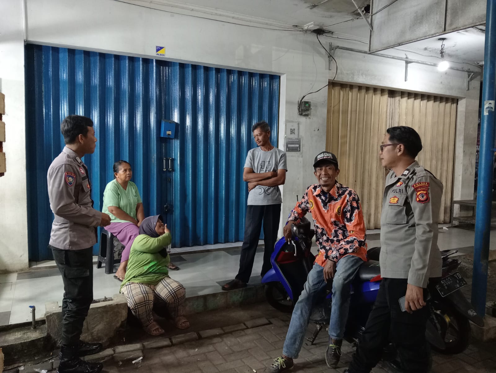 Patroli KRYD Malam Hari, Bhabinkamtibmas Polsek Luragung Sampaikan Himbauan kepada Tukang Parkir Minimarket