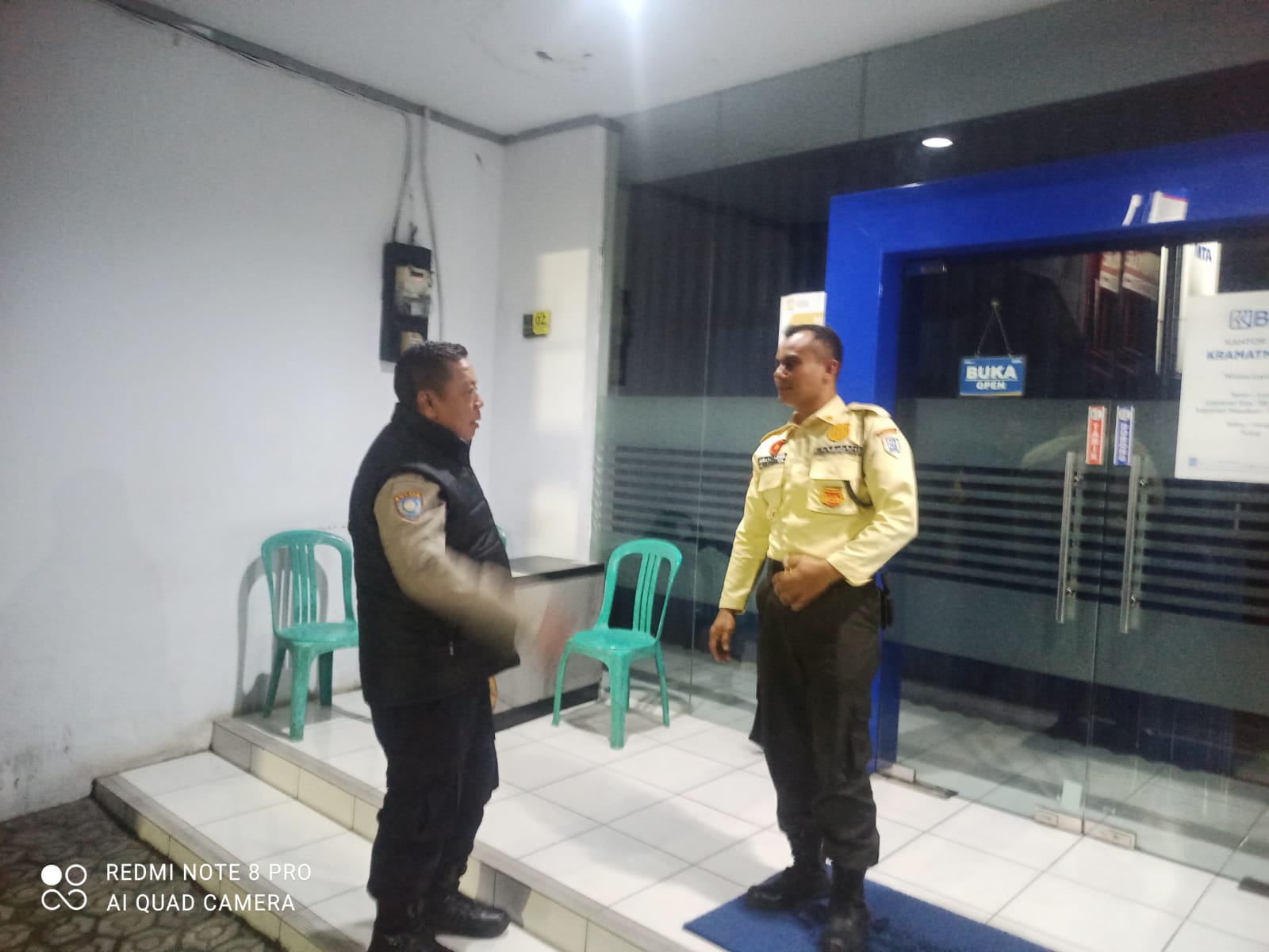 Patroli Malam Hari Piket Polsek Kramatmulya Jaga Harkamtibmas di Wilayah Hukum Sambangi Security Bank BRI Unit Kramatmulya