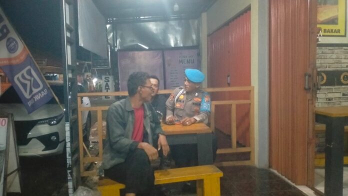 Kegiatan patroli tersebut menyasar sejumlah titik yang dianggap rawan, termasuk warung dan tempat berkumpulnya masyarakat. Dalam patroli tersebut, petugas terlihat berdialog langsung dengan warga yang masih beraktivitas pada malam hari.