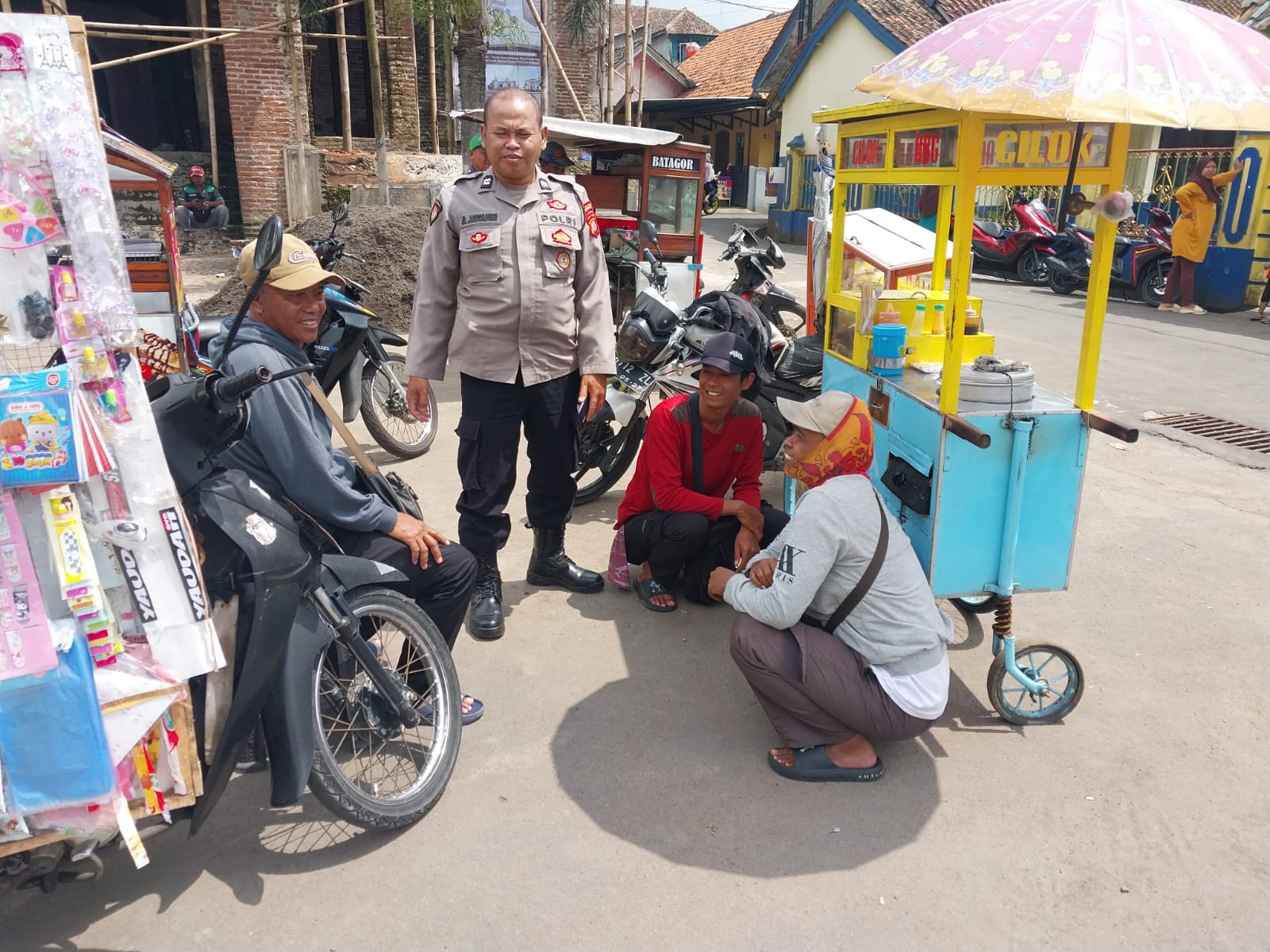 Patroli Siang Anggota Polsek Kramatmulya Jaga Keamanan di Wilayah Hukum Polsek Kramatmulya Sambangi Pedagang Warga Desa Gandasoli