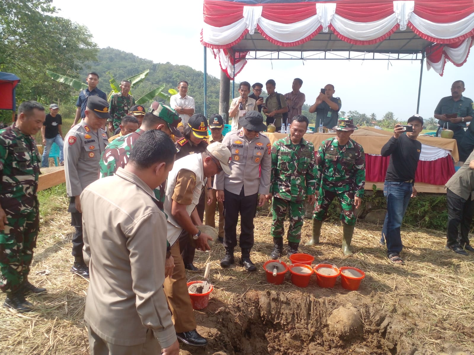 Kegiatan tersebut dihadiri oleh unsur TNI-Polri, pemerintah daerah, serta tokoh masyarakat setempat. Dalam prosesi simbolis tersebut, tampak perwakilan TNI dan Polri bersama-sama menuangkan adukan semen sebagai tanda dimulainya pembangunan infrastruktur yang sangat dinantikan warga.