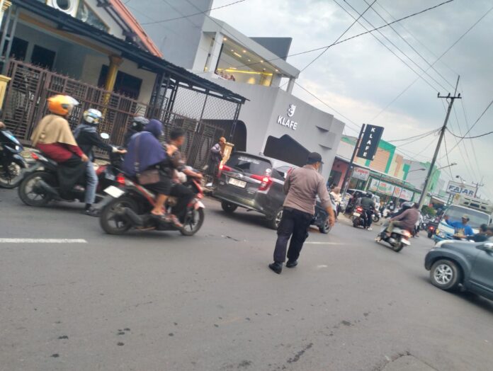 Selain melakukan pengaturan arus kendaraan, petugas juga memberikan imbauan kepada para pengguna jalan agar tetap mematuhi peraturan lalu lintas, menjaga keselamatan, serta berhati-hati selama perjalanan.