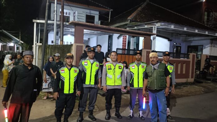 Pengamanan Malam Takbiran Idul Fitri, Bhabinkamtibmas Desa Cimaranten Bersama Linmas Siaga