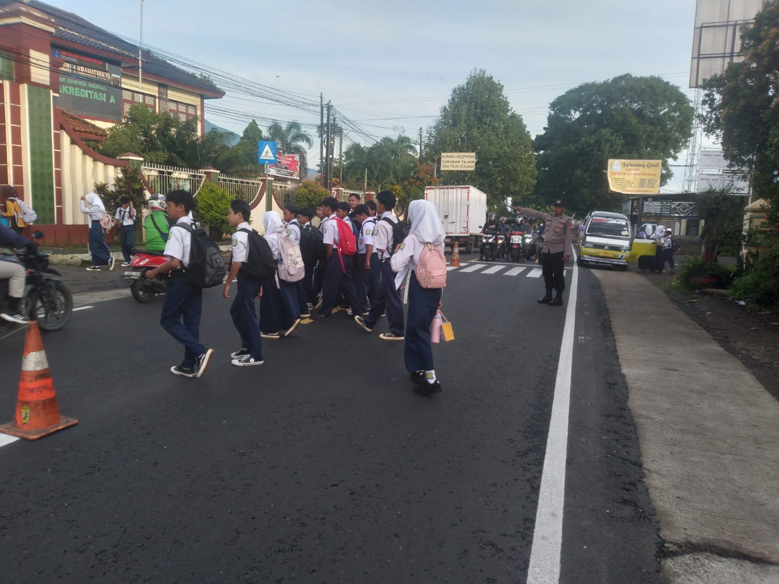 Polres Kuningan – Memulai aktivitas pada Senin pagi (19/01/2026), personel Polres Kuningan melalui Polsek Kramatmulya telah tergelar di lapangan untuk melaksanakan kegiatan Pelayanan Pagi atau PH Pagi. Fokus utama pengamanan dilakukan di depan SMPN 1 Kramatmulya guna membantu kelancaran arus lalu lintas dan menyeberangkan Warga dan pelajar. Kegiatan ini bertujuan untuk mencegah terjadinya kecelakaan lalu lintas serta memberikan rasa aman bagi orang tua yang mengantarkan putra-putrinya ke sekolah.Tak hanya di pagi hari, rangkaian kegiatan preventif juga dilakukan secara masif melalui patroli dialogis di wilayah Polsek Kramatmulya.