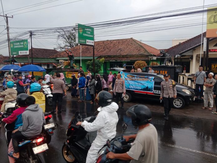 Polres Kuningan Polda Jabar – Polsek Ciawigebang Polres Kuningan Polda Jabar di bawah pimpinan Kapolsek Ciawigebang AKP Dani Supriadi, S.H., bersama SMK PGRI Ciawigebang Kabupaten Kuningan melaksanakan kegiatan bagi-bagi takjil kepada masyarakat pada bulan Ramadhan 1447 H / 2026 M, Senin (16/3/2026).