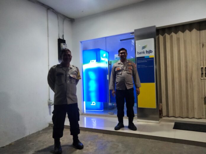 Ka SPKT 3 Aiptu Ajat terlihat berdialog akrab namun tegas dengan petugas Satpam di Bank BJB dan BRI. Ia mengingatkan agar para penjaga keamanan tidak lengah dan tetap meningkatkan kewaspadaan terhadap setiap pergerakan orang yang mencurigakan di sekitar area parkir maupun ruang ATM.