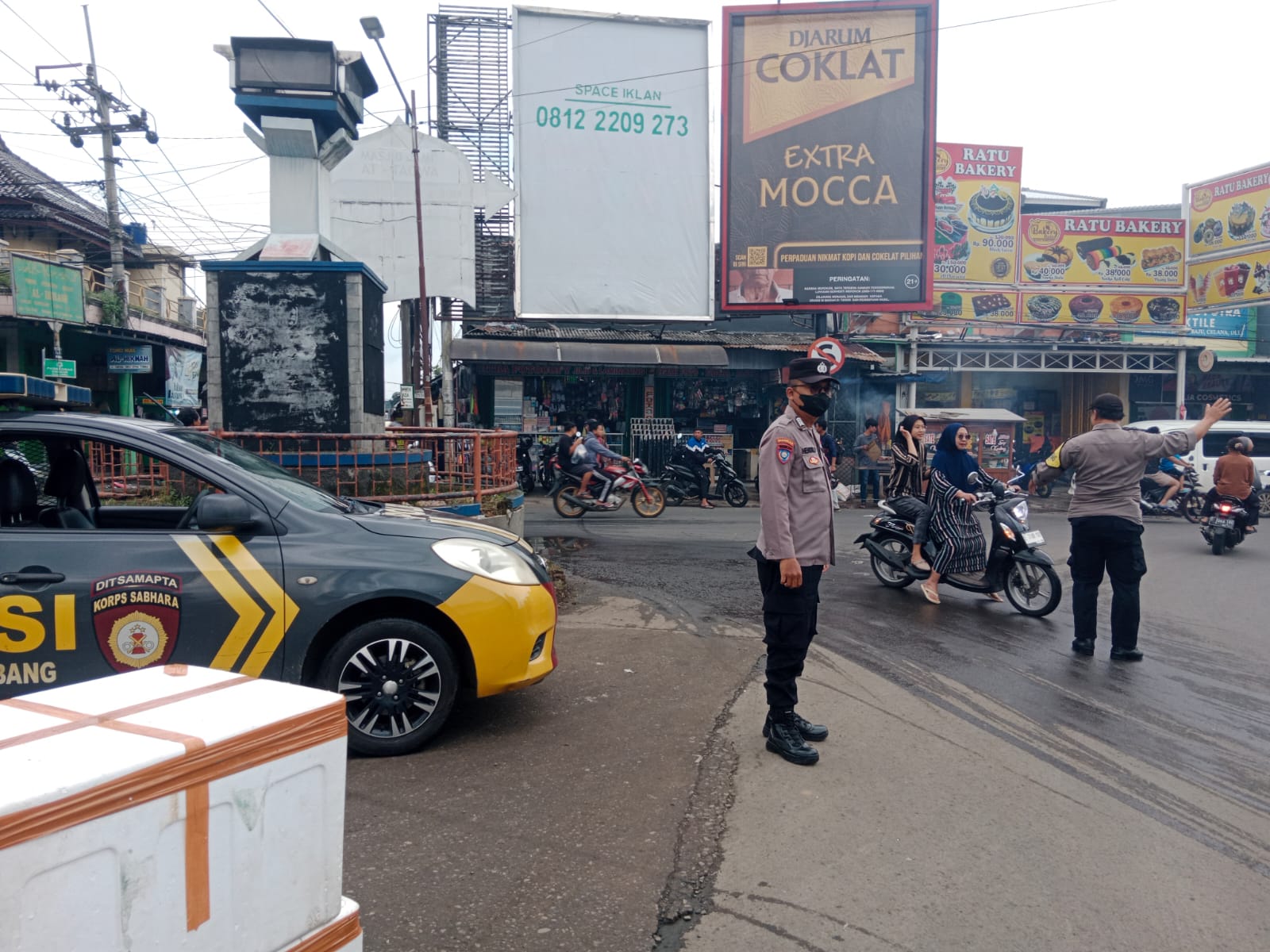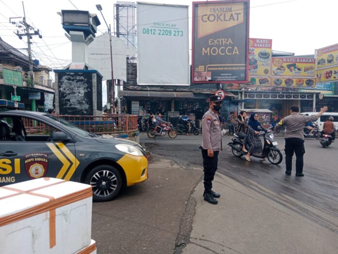 Polres Kuningan Polda Jabar – Anggota Pos Pengamanan (Pos PAM) Ciawigebang Operasi Ketupat Lodaya 2026 Polres Kuningan Polda Jabar, Aipda Mulyadi bersama Bripka Hendri Priyono melaksanakan kegiatan pengamanan sekaligus pengaturan arus lalu lintas di Terminal Ciawigebang, Kecamatan Ciawigebang, Kabupaten Kuningan, Senin (16/3/2026).