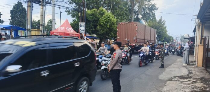 Polres Kuningan Polda Jabar – Dalam rangka mengantisipasi lonjakan arus balik dan wisata pasca Hari Raya Idul Fitri 1447 H / 2026 M, anggota Pos PAM Ciawigebang Ops Ketupat Lodaya 2026 Polres Kuningan melaksanakan kegiatan pengamanan dan pengaturan lalu lintas di persimpangan Alun-Alun Desa Ciawigebang, Kecamatan Ciawigebang, Kabupaten Kuningan, Senin (23/3/2026).