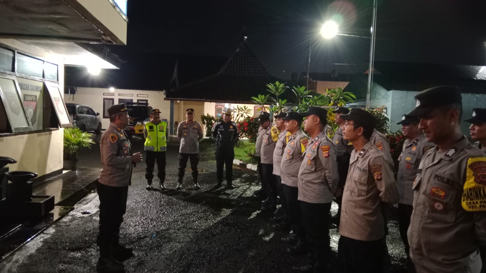 Polres Kuningan Polda Jabar – Suasana khidmat menyelimuti halaman Mapolsek saat jajaran personel gabungan dari empat polsek berkumpul untuk menerima instruksi sebelum dimulainya patroli wilayah. Kapolsek Mandirancan berdiri di depan barisan memberikan motivasi serta arahan teknis agar pelayanan kepada masyarakat melalui patroli malam ini dapat berjalan dengan penuh tanggung jawab dan integritas tinggi.
