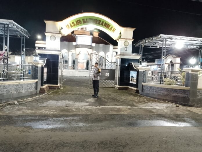 Polres Kuningan Polda Jabar – Dalam rangka memberikan rasa aman dan nyaman kepada masyarakat yang melaksanakan ibadah di bulan suci Ramadhan 1447 H, Anggota Bhabinkamtibmas Polsek Ciawigebang Polres Kuningan Polda Jabar Aiptu Juli Harto melaksanakan kegiatan pengamanan shalat tarawih di Masjid Baiturrahman Desa Ciawilor, Kecamatan Ciawigebang, Kabupaten Kuningan, Selasa (10/3/2026) malam.