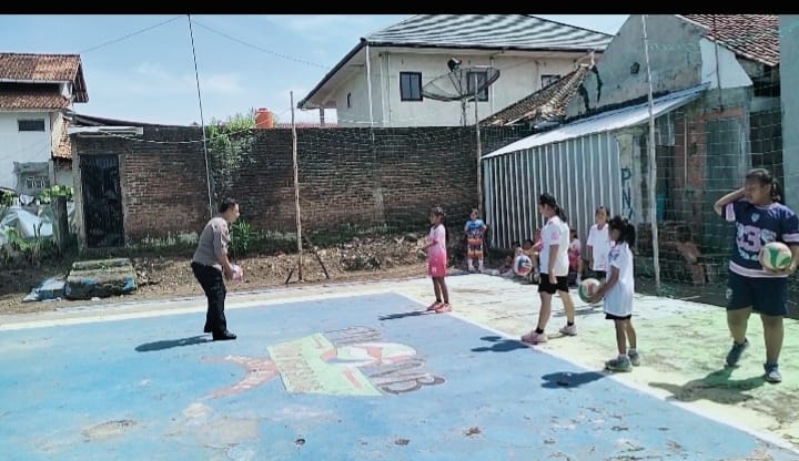 Polisi Hadir di Tengah Remaja, Bhabinkamtibmas Desa Kapandayan Dampingi Latihan Voli Rutin