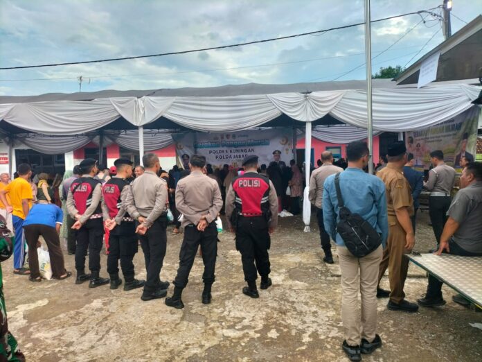 Polres Kuningan Polda Jabar – Anggota Polsek Ciawigebang jajaran Polres Kuningan Polda Jabar bersama anggota Polres Kuningan melaksanakan pengamanan kegiatan Gerakan Pangan Murah yang digelar oleh Polres Kuningan bekerja sama dengan Pemerintah Kabupaten Kuningan, Selasa (3/3/2026).