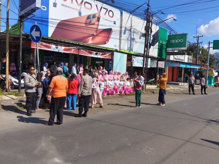 Polres Kuningan Polda Jabar – Anggota Polsek Ciawigebang Polres Kuningan Polda Jabar melaksanakan pengamanan kegiatan pembagian takjil kepada masyarakat yang dilaksanakan oleh Bhayangkari Cabang Kuningan bersama TK Bhayangkari Ciawigebang Kabupaten Kuningan. Kegiatan tersebut berlangsung di Jalan Raya Siliwangi Ciawigebang, Kabupaten Kuningan, pada bulan Ramadhan 1447 H / 2026 M, Kamis (12/3/2026).