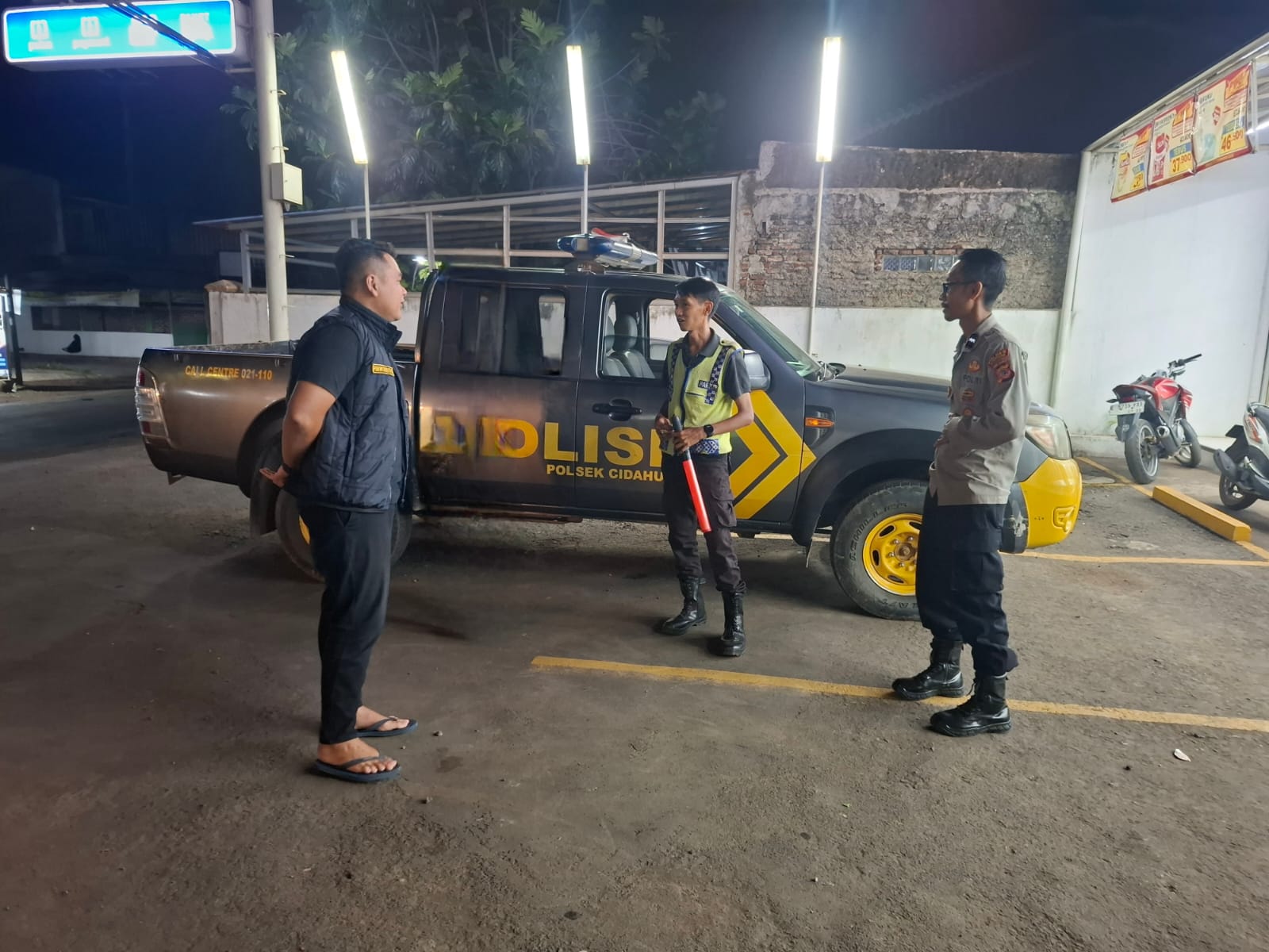 Polres Kuningan Polda Jabar – Anggota Polsek Cidahu melaksanakan patroli malam hari dan menyambangi tukang parkir Toko Indomart di wilayah Cidahu, Kabupaten Kuningan. Kegiatan ini dilakukan untuk meningkatkan keamanan dan ketertiban di wilayah tersebut, terutama pada malam hari.