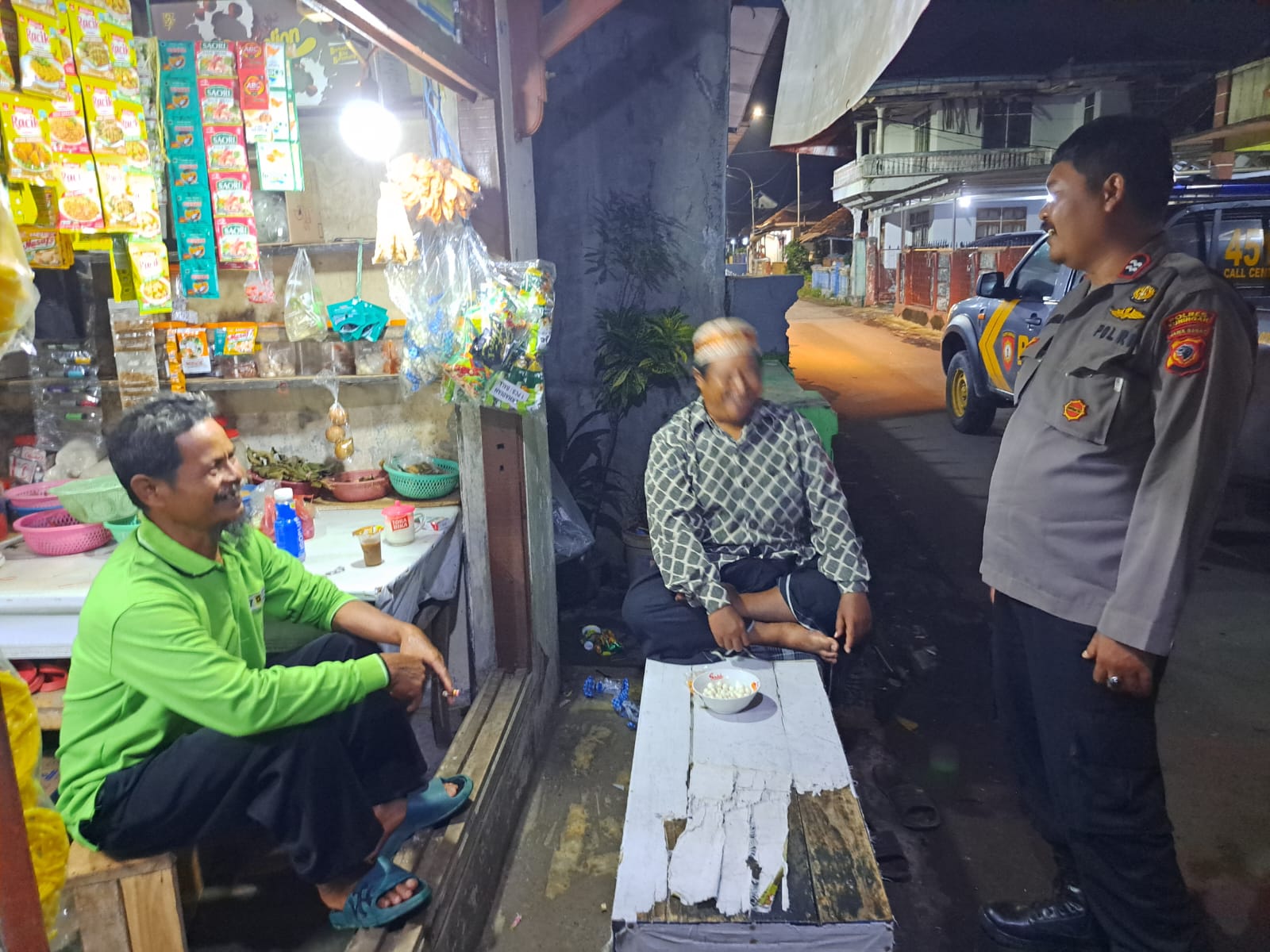 Kegiatan patroli tersebut dipimpin oleh Aiptu Aris Sunandar yang menyambangi warga di salah satu warung yang masih buka pada malam hari. Dalam kesempatan tersebut, Aiptu Aris berdialog langsung dengan masyarakat guna menyerap informasi serta memberikan imbauan kamtibmas.