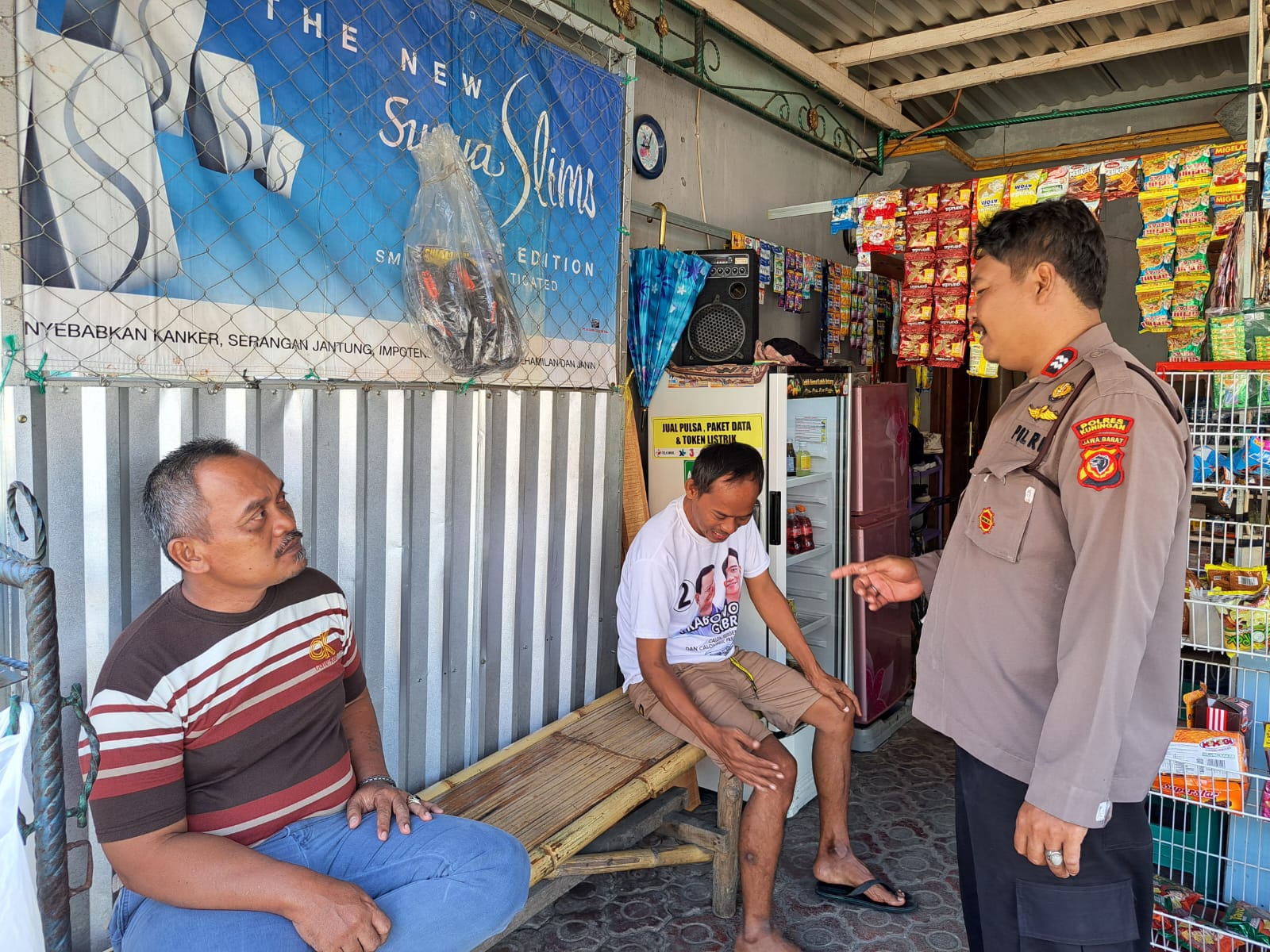 Seperti yang terlihat, seorang anggota Polsek Ciwaru menyambangi warga yang tengah berkumpul di sebuah warung. Dalam suasana santai dan penuh keakraban, petugas berdialog langsung dengan masyarakat guna menyerap informasi sekaligus menyampaikan pesan-pesan Kamtibmas.