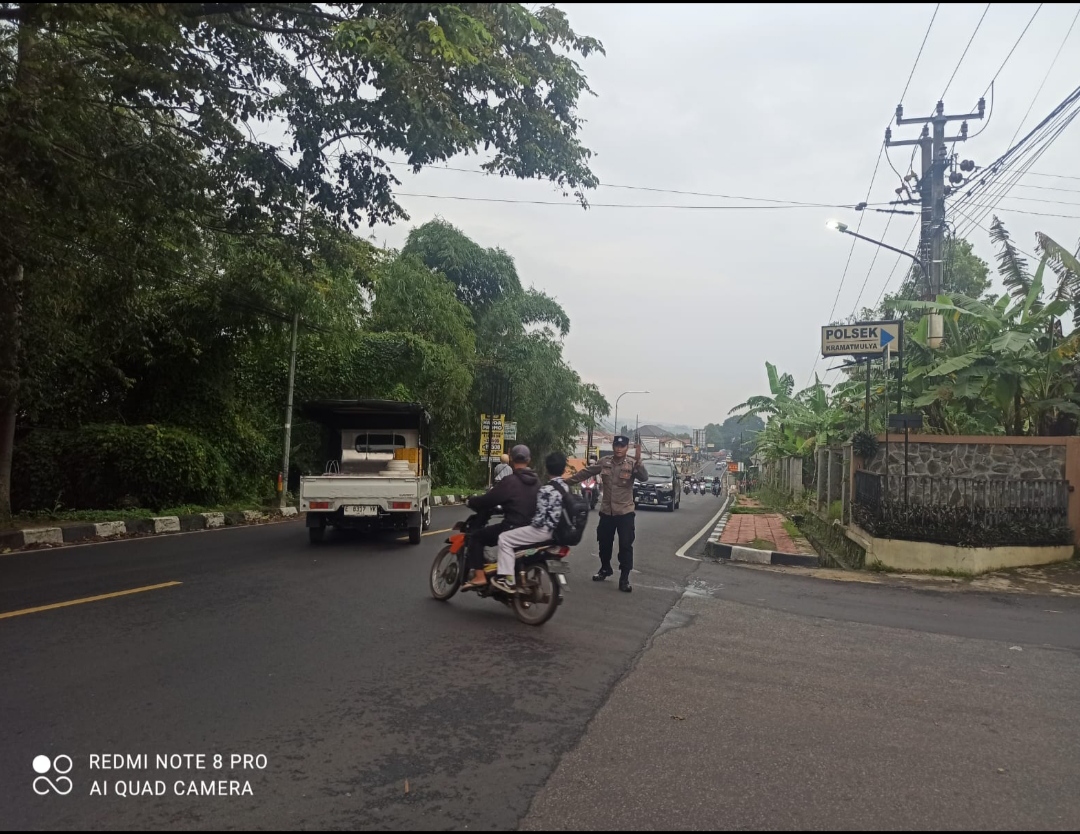 Pengaturan lalu lintas di pagi hari kembali dilaksanakan oleh jajaran Polsek Kramatmulya.
