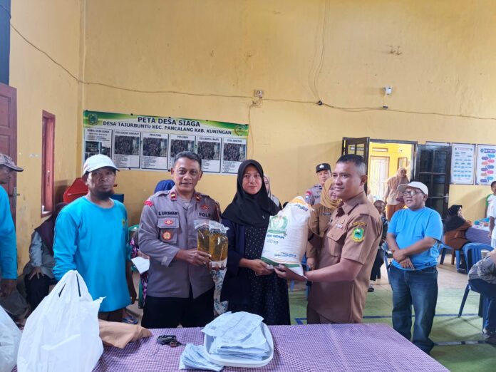 KUNINGAN – Jajaran Kepolisian Sektor (Polsek) Pancalang terus menunjukkan komitmennya dalam mendukung kesejahteraan masyarakat melalui pengamanan dan monitoring intensif pada berbagai kegiatan pelayanan publik. Pada Senin pagi, 13 April 2026, personel Polsek Pancalang memantau langsung pelaksanaan Gebyar Cek Kesehatan Gratis (CKG) sekaligus penyaluran Bantuan Pangan pemerintah yang bertempat di Aula Balai Desa Tajurbuntu. Kegiatan monitoring ini dipimpin langsung oleh Kapolsek Pancalang, IPDA Lukman Hakim, didampingi oleh personel Bhabinkamtibmas Aipda Djayusman dan Brigpol Dendi guna memastikan seluruh rangkaian acara berjalan tertib serta tepat sasaran.Program pemeriksaan kesehatan gratis ini merupakan inisiatif Puskesmas Pancalang yang berkolaborasi dengan RS Linggajati, RS Sumber Hurip, serta RS Pradipa yang ditujukan bagi warga di tiga belas desa se-Kecamatan Pancalang. Masyarakat yang hadir mendapatkan berbagai fasilitas pemeriksaan medis secara cuma-cuma, mulai dari pemeriksaan tensi darah, pemeriksaan kadar gula darah, hingga pemeriksaan jantung melalui metode CKG dan EKG. Kehadiran tim medis gabungan ini memberikan kemudahan bagi warga dalam mendeteksi dini kondisi kesehatan mereka tanpa dipungut biaya.Bersamaan dengan agenda kesehatan tersebut, Polsek Pancalang juga mengawal ketat distribusi bantuan pangan dari pemerintah kepada warga Desa Tajurbuntu. Dalam penyaluran kali ini, tercatat sebanyak 249 Keluarga Penerima Manfaat (KPM) menerima paket bantuan berupa beras seberat 20 kilogram dan minyak goreng sebanyak 4 liter. Pendampingan oleh pihak kepolisian dilakukan secara menyeluruh untuk menjamin kelancaran antrean serta memastikan bantuan sampai ke tangan yang berhak menerimanya sesuai dengan data yang telah ditetapkan.Kapolres Kuningan, AKBP Muhammad Ali Akbar, S.I.K., M.Si., melalui Kapolsek Pancalang menyampaikan bahwa kegiatan ini merupakan wujud nyata sinergitas antara kepolisian, instansi kesehatan, dan pemerintah daerah dalam melayani masyarakat. Pihak kepolisian hadir tidak hanya untuk menjaga stabilitas keamanan, tetapi juga memastikan program kemanusiaan dapat dirasakan manfaatnya secara maksimal oleh seluruh warga. Hingga kegiatan berakhir pada siang hari, situasi di lokasi terpantau sangat aman dan kondusif dengan antusiasme warga yang tinggi dalam memanfaatkan pelayanan kesehatan maupun bantuan sosial tersebut.