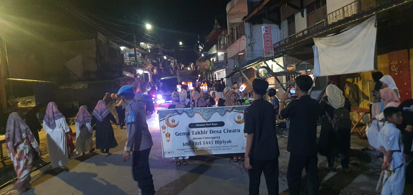 Terlihat pula kehadiran aparat kepolisian dari Polsek Ciwaru yang turut melakukan pengamanan guna memastikan kegiatan berjalan aman dan lancar. Personel kepolisian tampak sigap mengatur arus lalu lintas serta mengawasi jalannya pawai takbiran agar tetap kondusif.