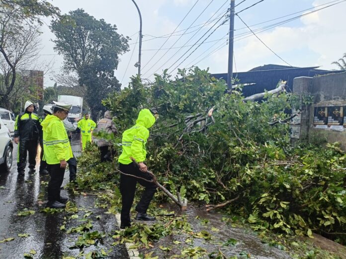 Pohon jenis laban tumbang dan menutup Jalan Raya Cilimus–Cirebon sehingga menghambat arus lalu lintas.